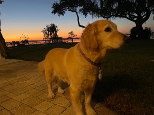 My eyes focused out toward the horizon as red and yellow lights danced across the water. The darkest part of the day is just before dawn, when everything is resting, quiet before the brink of day. The outside critters were snuggled in their burrows, the birds tucked down in their nests not a peep or song being sung. Even the owl was soundless, perched where I thought he might be on the tallest branch that lingers near the shoreline, waiting to fly home. There I waited for the black space in front of me to fade into the deepest blues and for the trees only then to become shadows of the morning—twilight. Our golden retriever Lilly shook, causing her collar to rattle much like an old-fashioned alarm clock that made Maia, our skittish cat, leap from the bed fearful for her life. Maia knows very well that Lilly shakes every morning and has for the past nine years to signal she needs to go out. Athena, our brave warrior rescue cat, appeared from nowhere to chase and scold Maia for fleeing, though it’s more like a daily cat and mouse game that they play. Our not-so-graceful cat named Eevee clawed her way to the bed’s surface and started pleading for food with the loudest, most pitiful half meows heard on the planet. Reluctantly, I tossed the sheets aside knowing I, as a pet guardian, have been summoned for morning duties. I yawned—morning had found me before dawn.